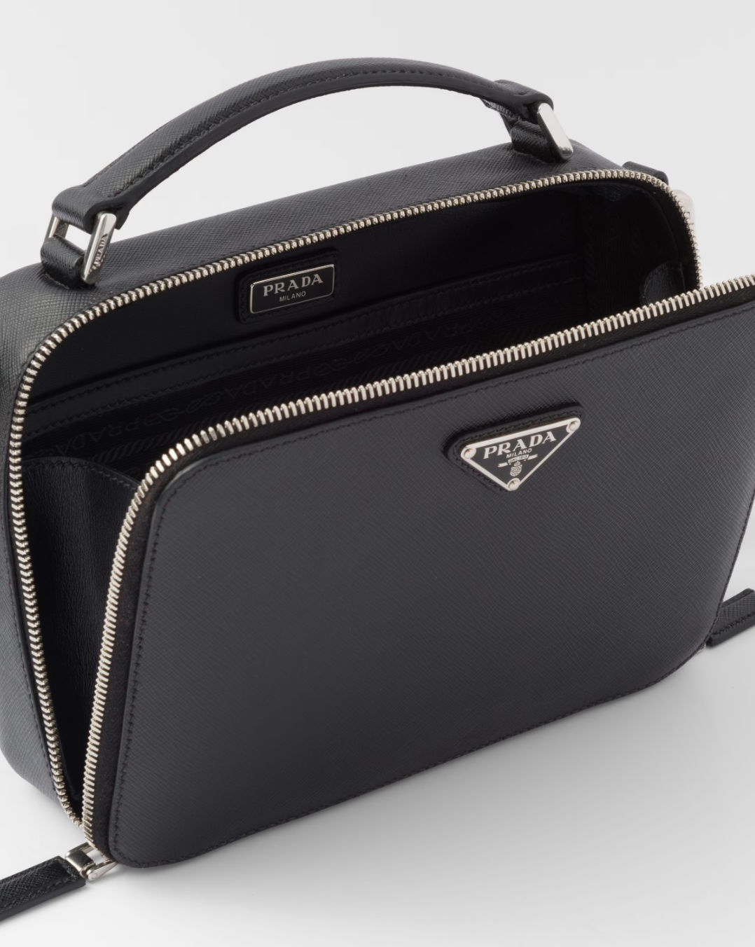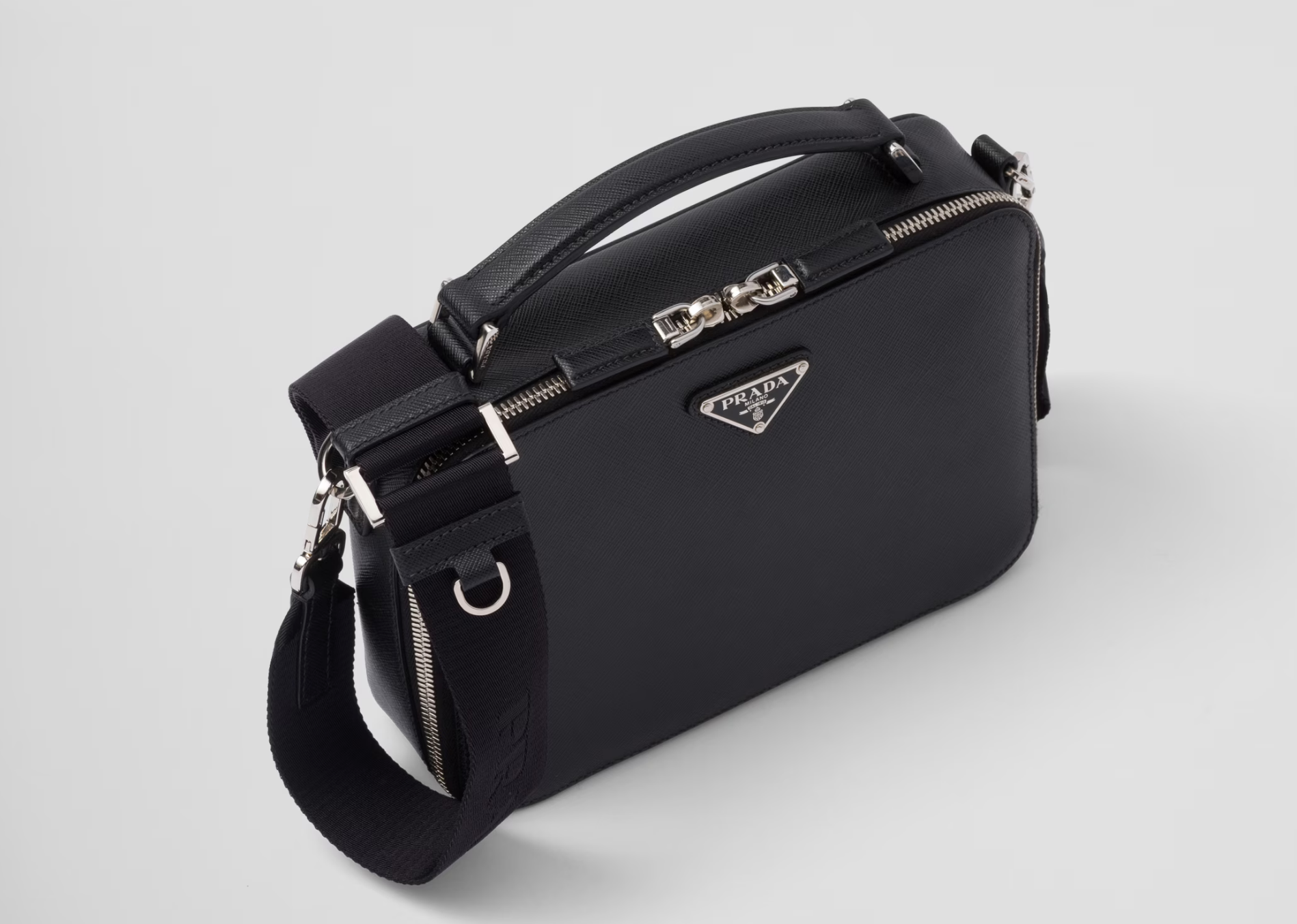 Black Prada Brique Medium Saffiano Leather Bag