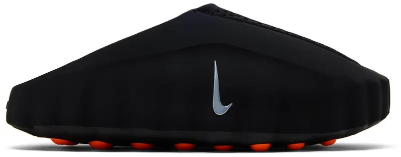 The Nike Mind 001 'Black Chrome' enhances your pregame routine with a revolutionary approach to footwear. Developed by the Nike Mind Science Department, this mule features a unique outsole with 22 nodes that move independently to activate sensory areas of the brain. The design is intended to help you stay present and connected to your surroundings before the big game. Dressed in a sleek Black and Chrome colorway with Hyper Crimson accents, the shoe utilizes a soft foam midsole for robust cushioning. A breathable knit tongue and perforated details ensure comfort, while the slip-on design allows for easy wear.