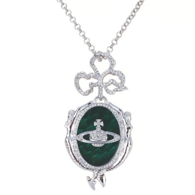 Vivienne Westwood Mermaid Orb Necklace Pendant Silver Green